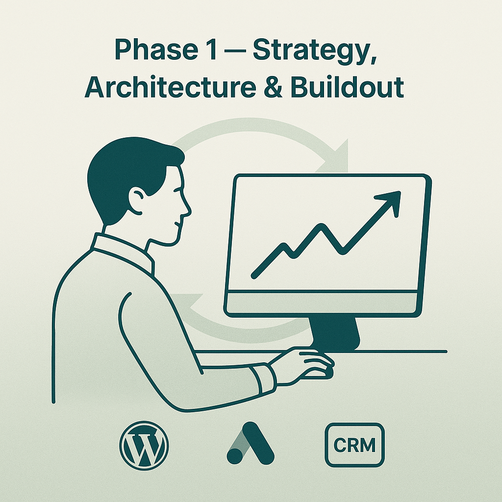 Over a focused 90-day build period, our team designs and launches your complete growth stack—featuring a high-performance WordPress site, advanced CRM with automation, multi-channel ad campaigns, and intelligent workflows that manage lead capture and scheduling automatically.